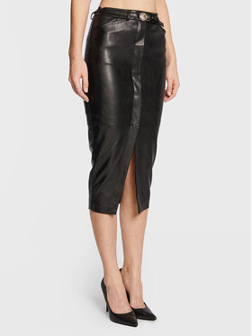 Babylon Spódnica z imitacji skóry R_E00164 Czarny Slim Fit