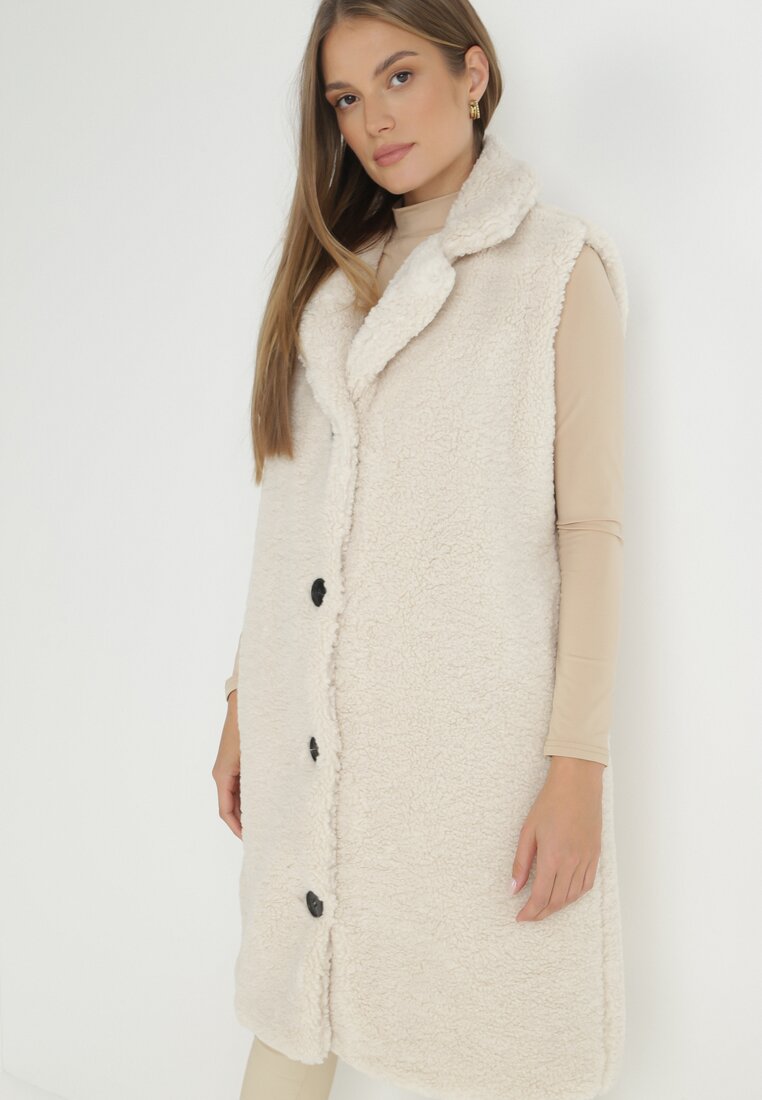 Beżowa Kamizelka z Futerka typu Baranek Dosse