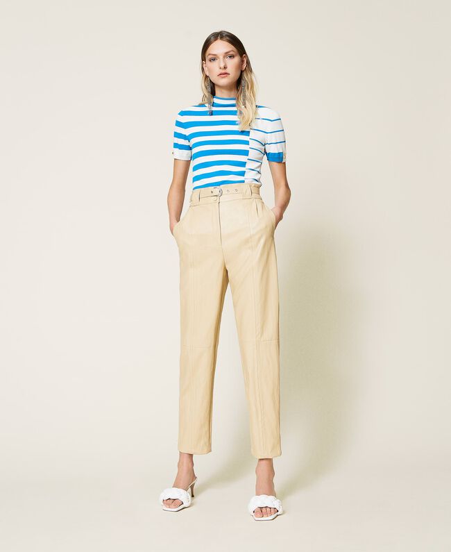 Beżowe spodnie z wysokim stanem Twinset