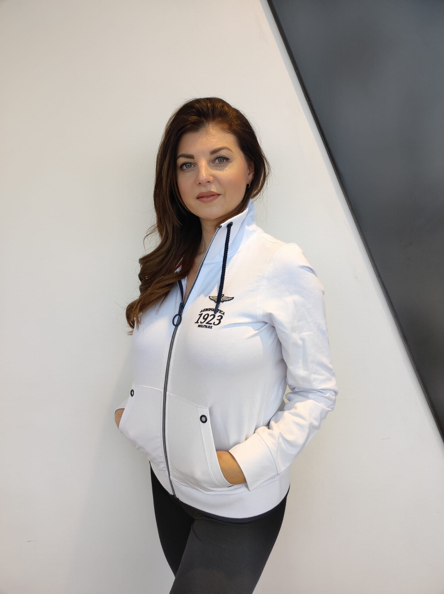Biała bluza zapinana na zamek Aeronautica Militare
