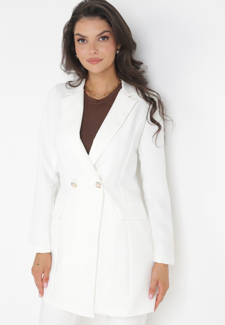 Biała Marynarka Taliowana Dwurzędowa Swed
