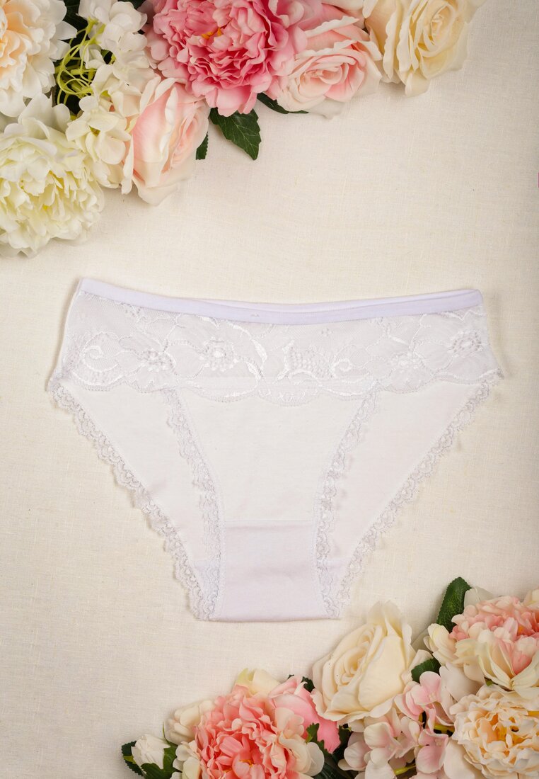 Białe Bawełniane Majtki Figi z Koronką Ollove