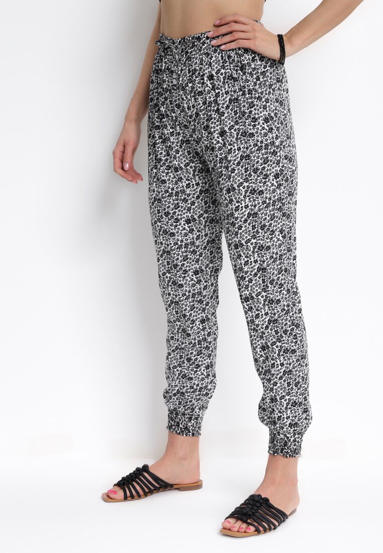 Białe Spodnie w Kwiaty z Gumką w Pasie i Wysokim Stanem Agnesi