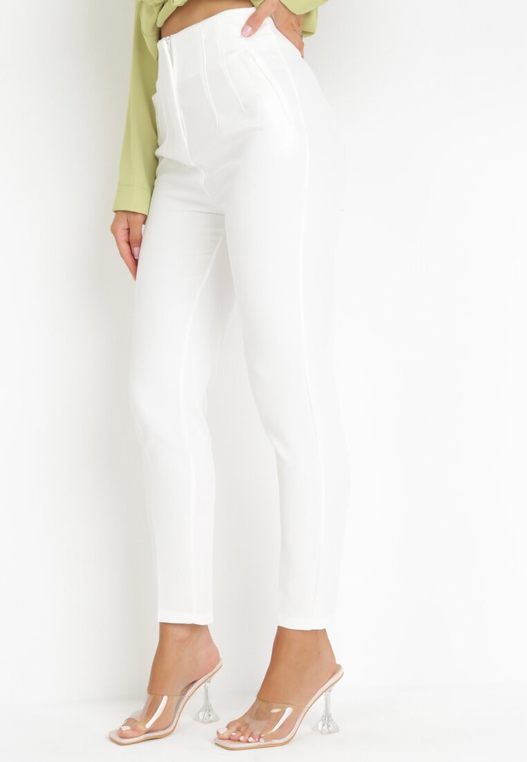 Białe Spodnie z Wysokim Stanem i Długimi Nogawkami Nakote