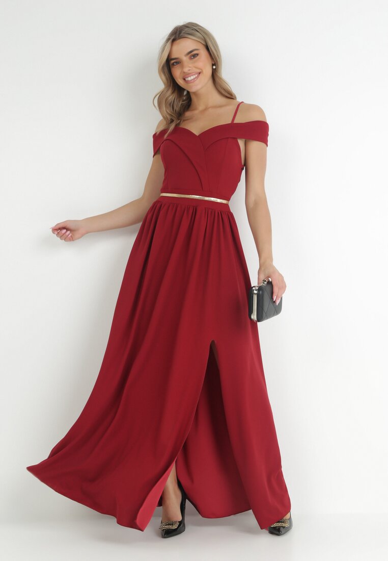 Bordowa Rozkloszowana Sukienka na Ramiączkach Maxi Chilli