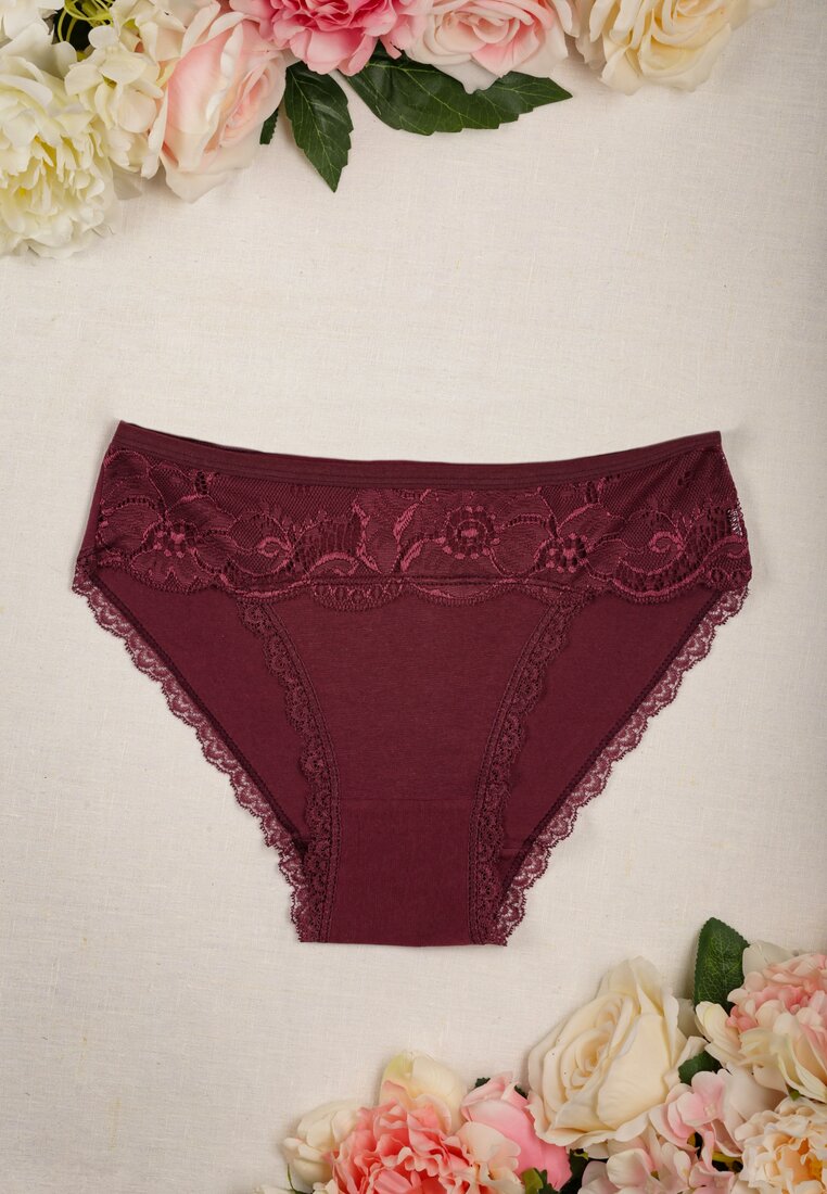 Bordowe Bawełniane Majtki Figi z Koronką Ollove