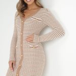 Brązowa Sukienka Dzianinowa z Napami Sonis
