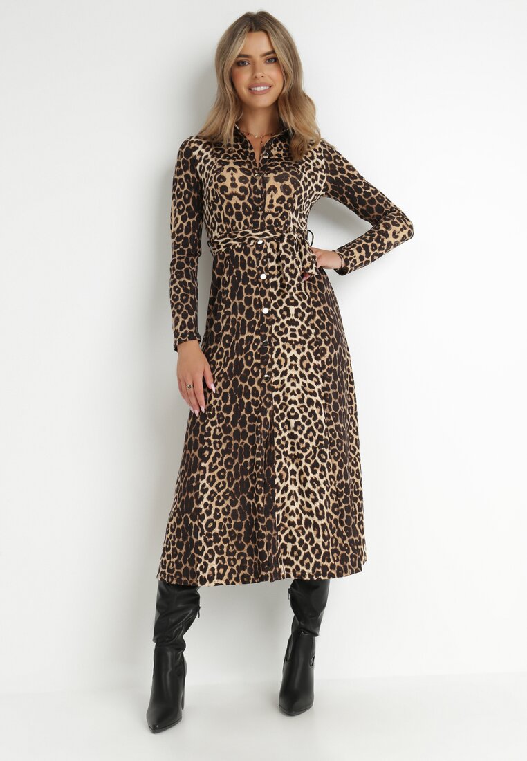 damski / damska / damskie Odzież damska > Sukienki > Sukienki Midi > Brązowy