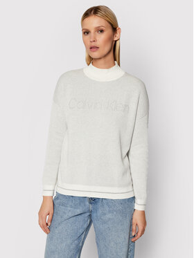 Calvin Klein Sweter Two Tone Mock Neck Logo K20K203242 Szary Regular Fit