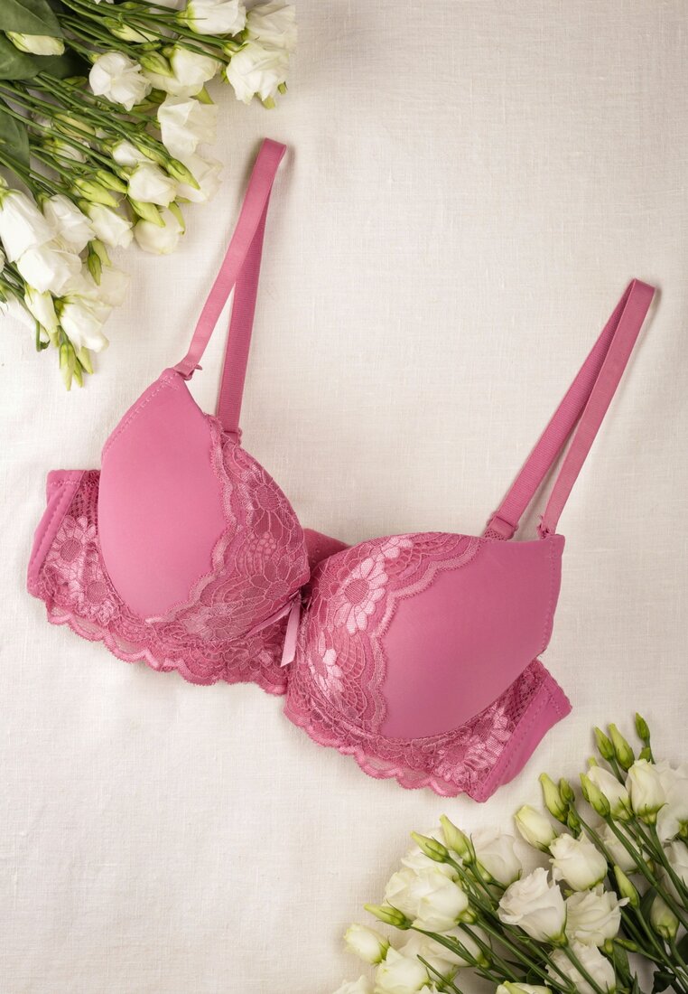 Ciemnoróżowy Biustonosz Push Up na Regulowanych Ramiączkach z Koronką Meelovi