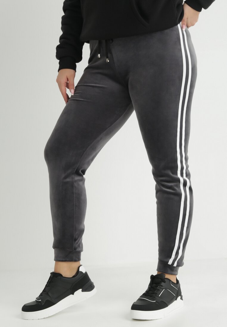 Ciemnoszare Spodnie Dresowe Welurowe z Lampasami Rekora