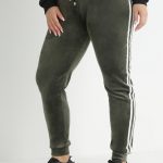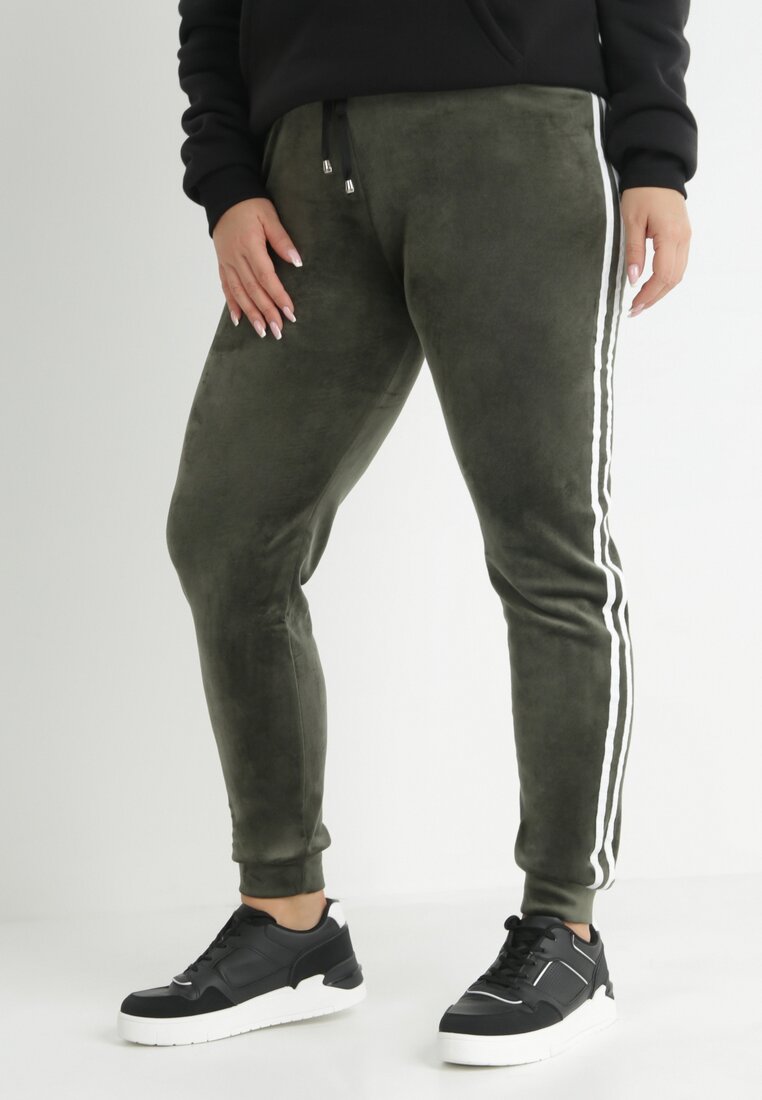 Ciemnozielone Spodnie Dresowe Welurowe z Lampasami Rekora