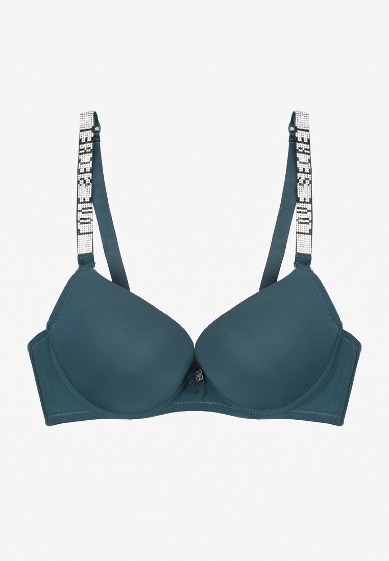 Ciemnozielony Biustonosz Push-Up na Ramiączkach w Cyrkonie Ahetona