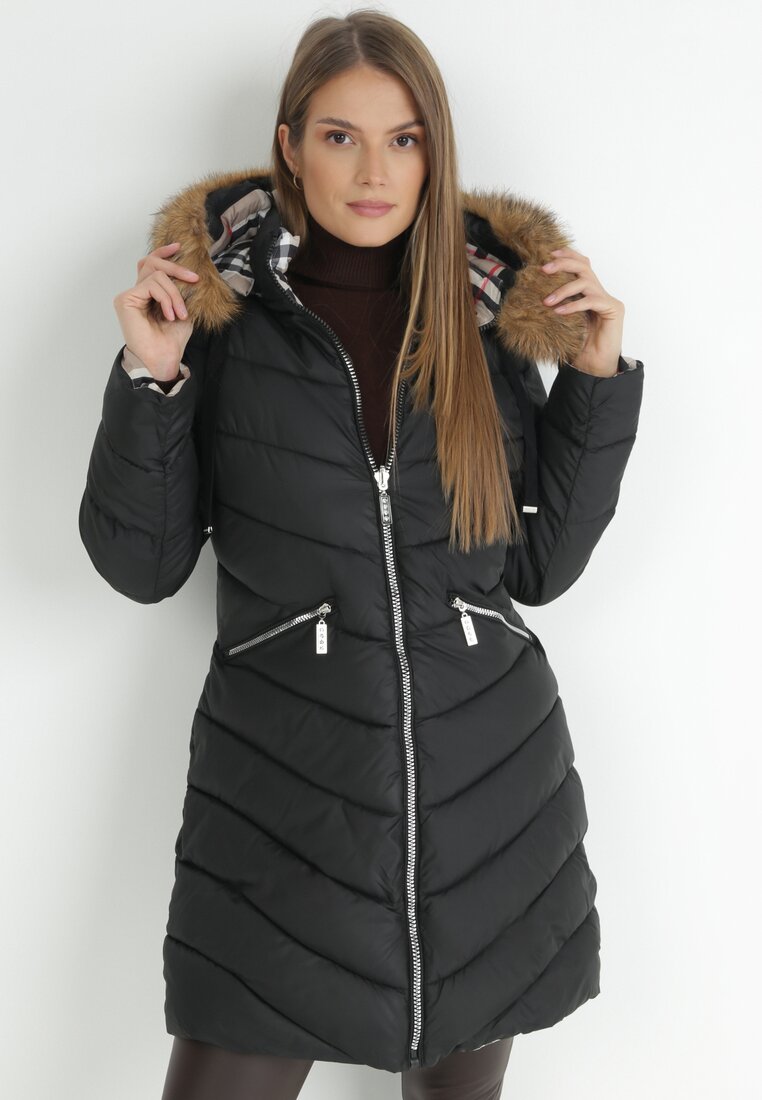 Czarna Kurtka Dwustronna z Kapturem Fiya