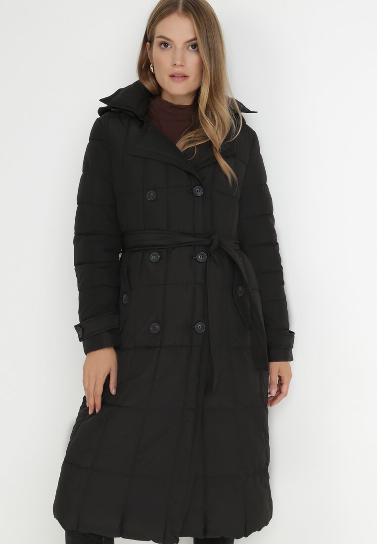 Czarna Kurtka Pikowana z Paskiem Gutdat