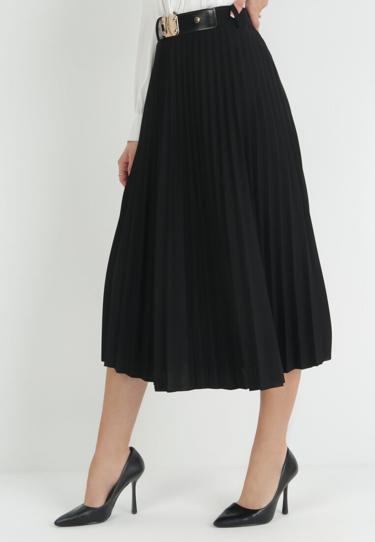 Czarna Spódnica Plisowana z Paskiem Onie