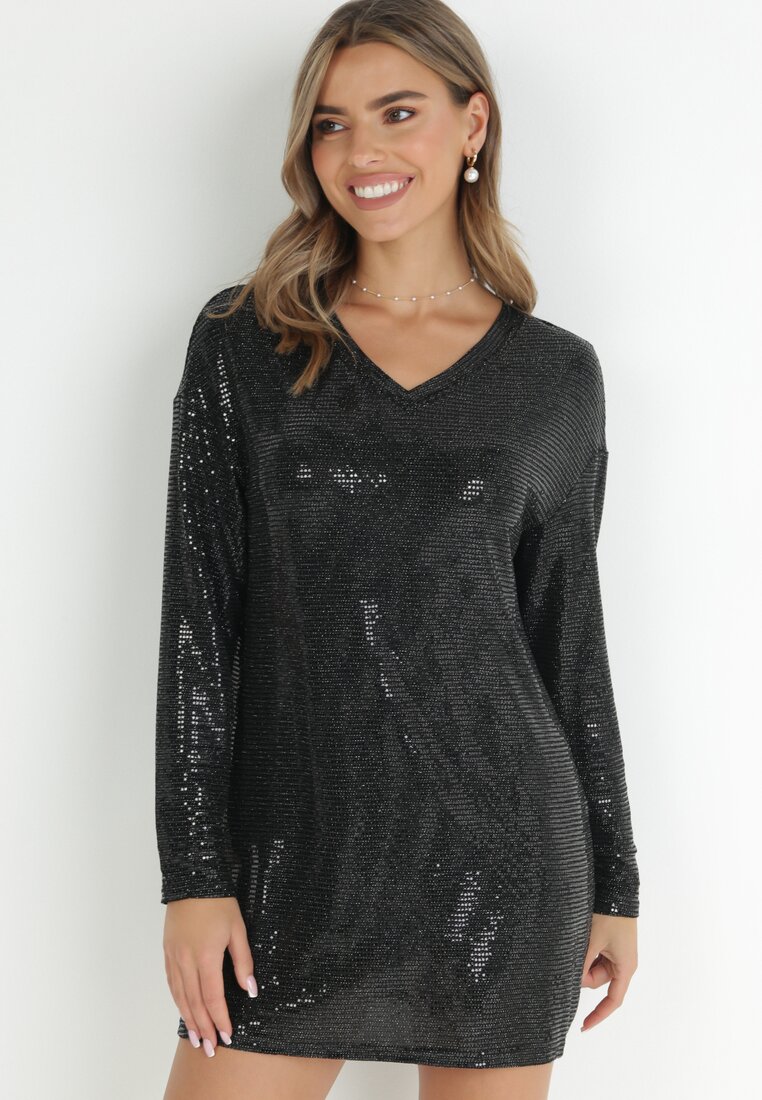 Czarna Sukienka Pudełkowa z Cekinami Tave