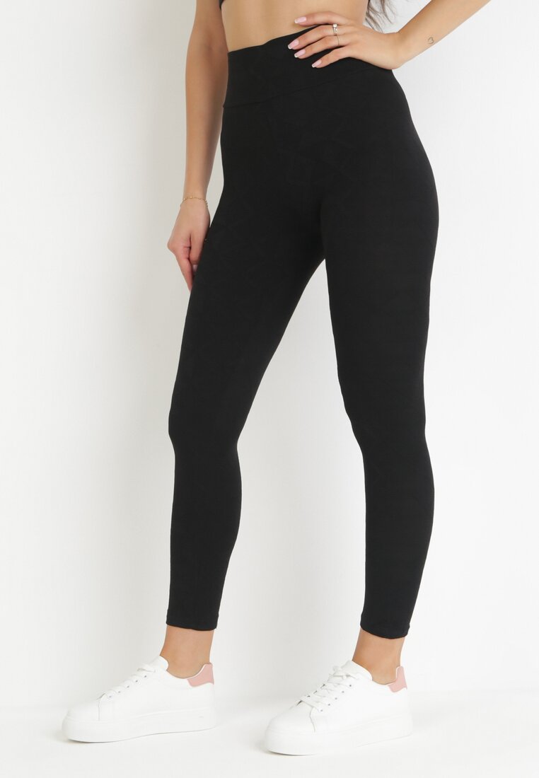 Czarne Legginsy z Szeroką Gumką i Wysokim Stanem w Pasie Honitta