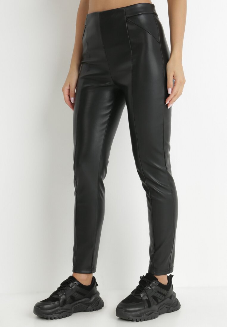 Czarne Spodnie z Imitacji Skóry Wierhaph
