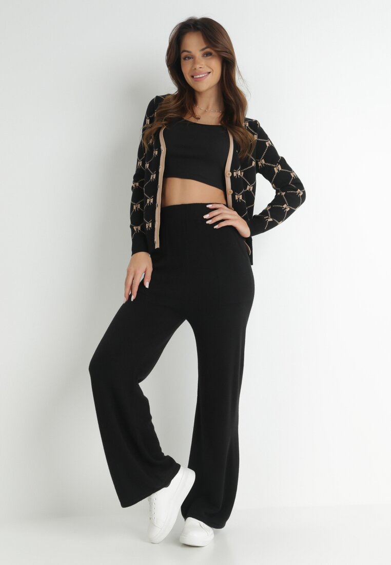 Czarno-Beżowy 2-częściowy Komplet Dzianinowy Meloye