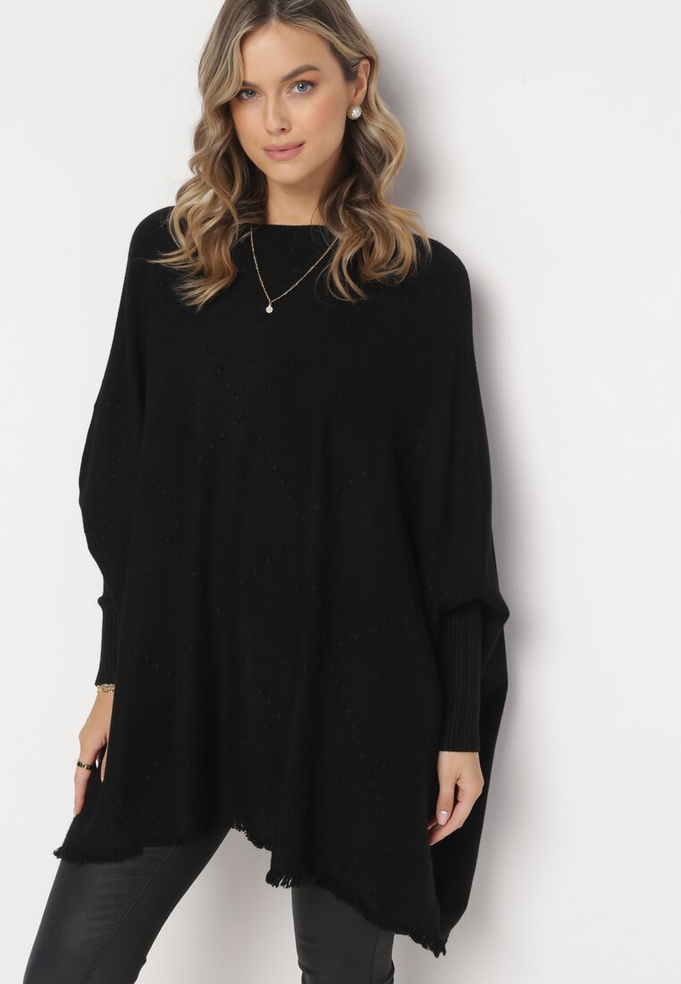 Czarny Gładki Sweter Nietoperz z Okrągłym Dekoltem Altomari