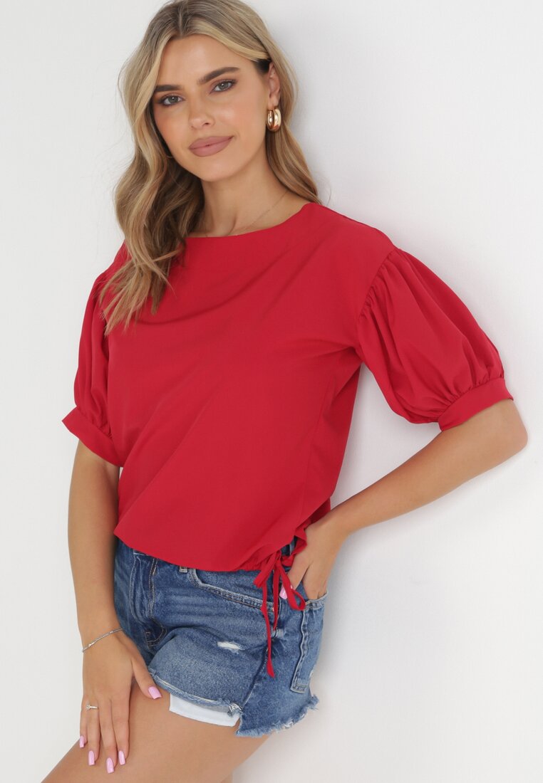 Czerwona Bluzka z Bufiastymi Rękawami i Ściąganiem na Dole Redora