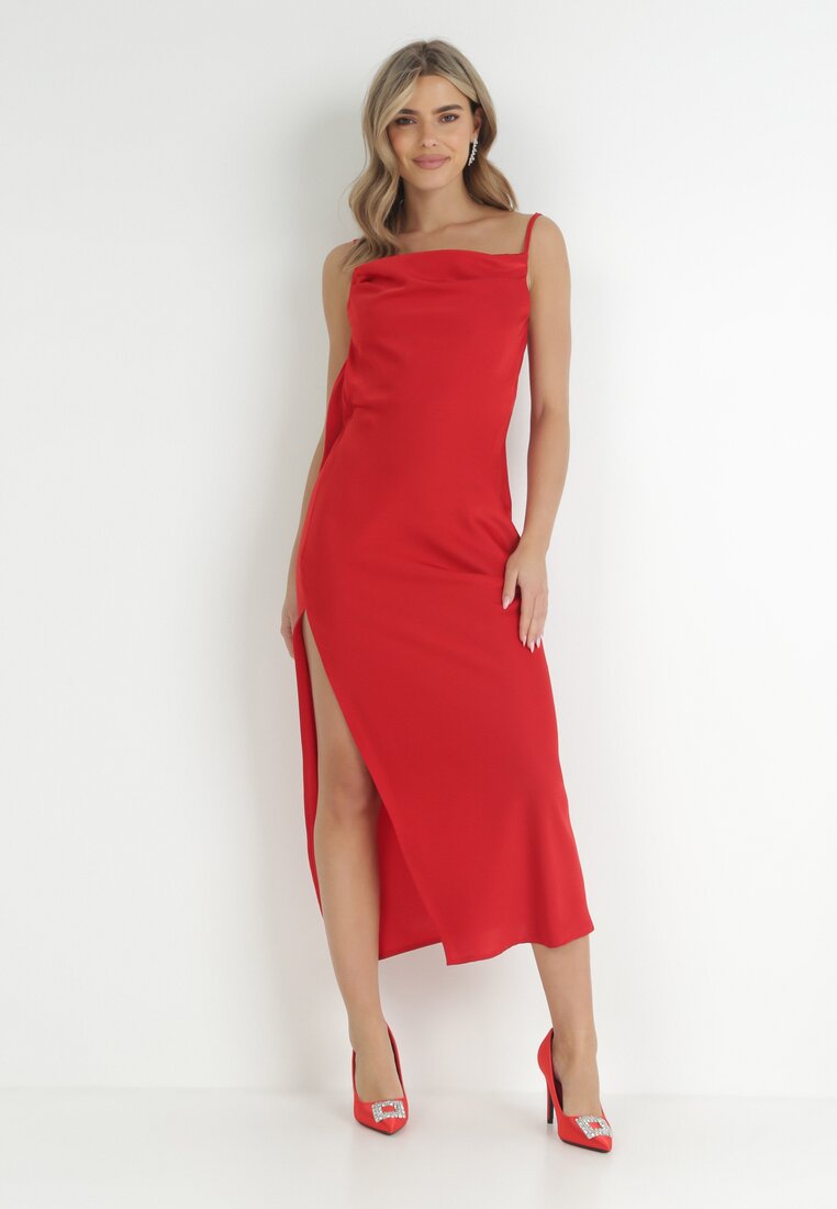 Czerwona Sukienka na Cienkich Ramiączkach z Odkrytymi Plecami Napi