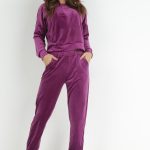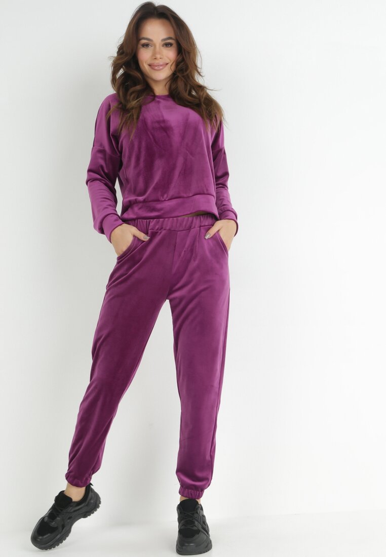 Fioletowe Spodnie Dresowe Welurowe Beshi