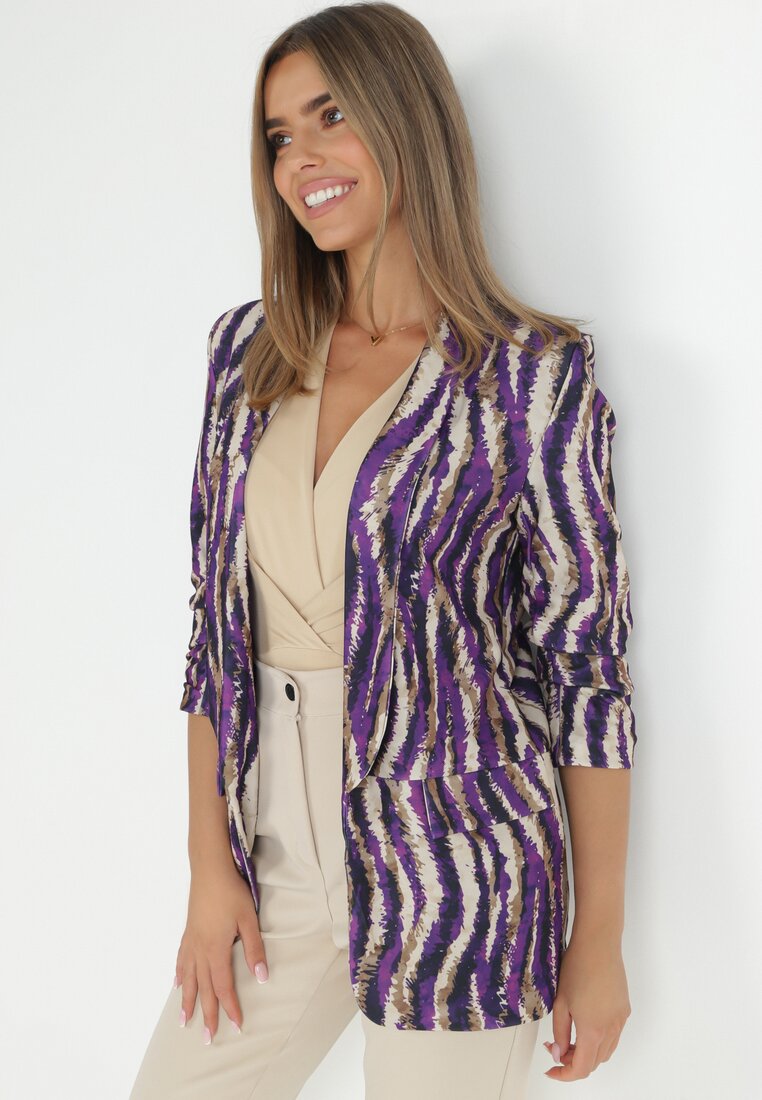 Fioletowo-Beżowa Marynarka w Kolorowe Paski Helma