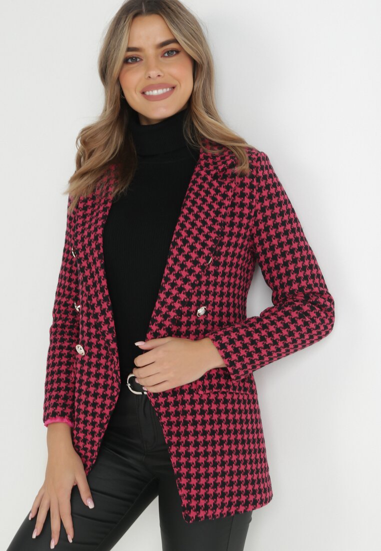 Fuksjowa Marynarka Dwurzędowa w Pepitkę Calni