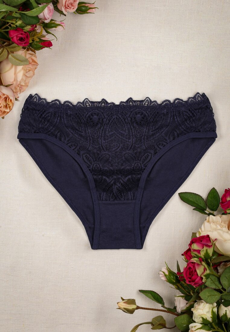 Granatowe Majtki Figi z Ażurową Koronką z Przodu Jamna