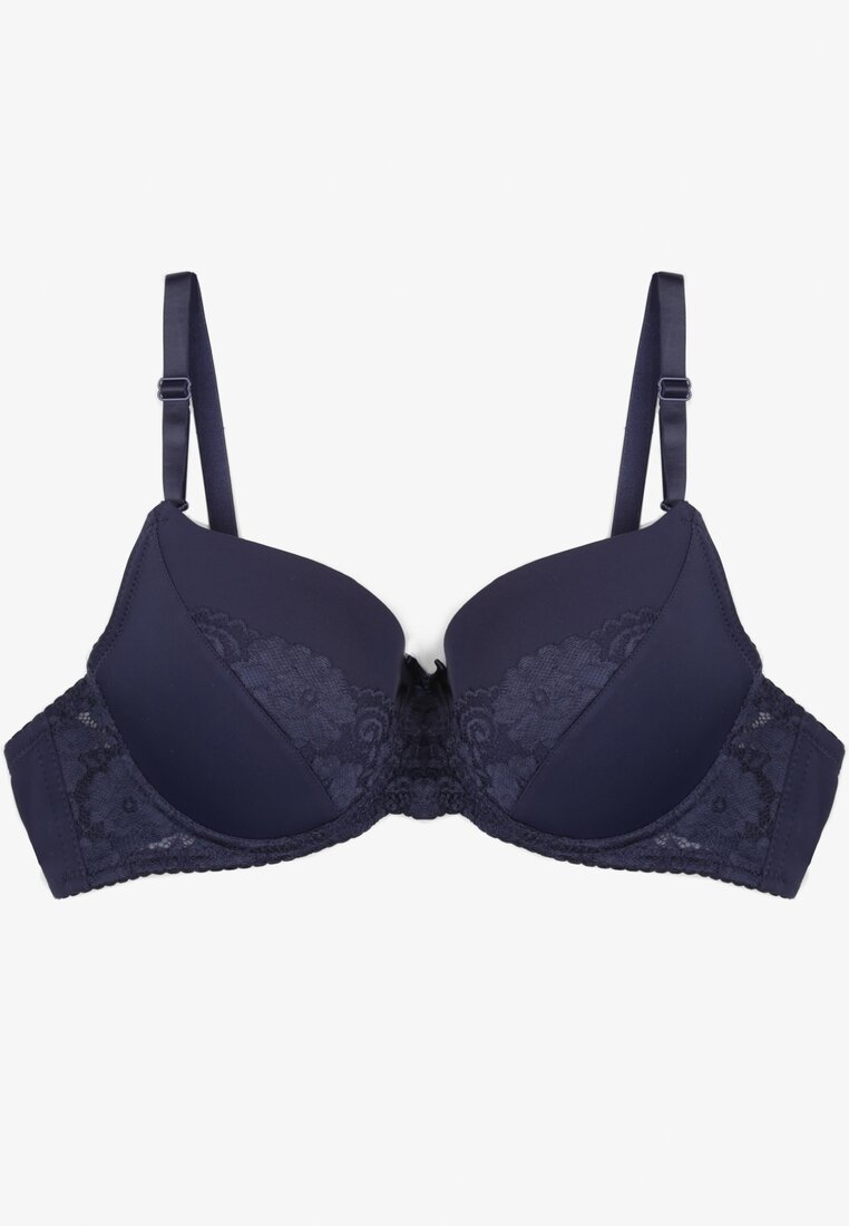 Granatowy Biustonosz z Koronką Usztywniany Alilanie