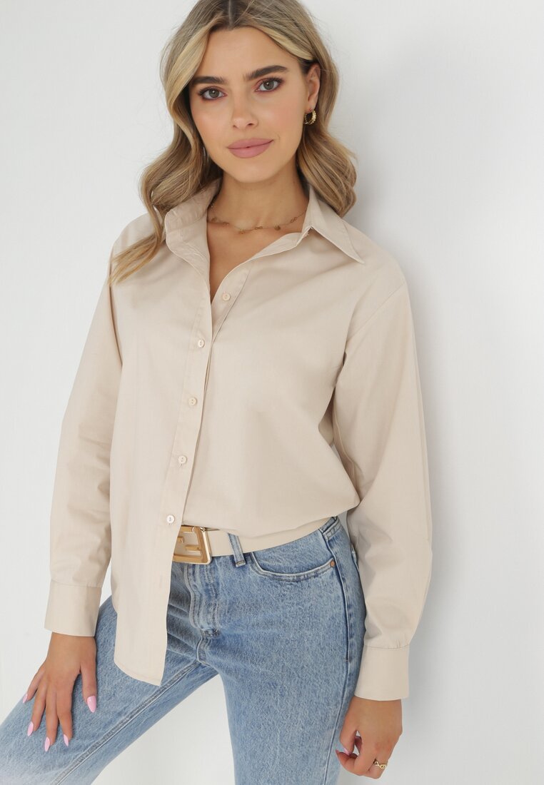 Jasnobeżowa Koszula Trapezowa z Szerokim Rękawem Izzar