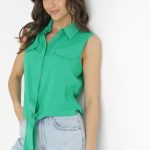 Jasnobeżowa Rozkloszowana Spódnica Midi z Ozdobnymi Guzikami i Materiałowym Paskiem z Bawełny Margareta