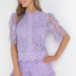 Jasnoniebieska Koszula z Koronkowymi Rękawami i Kołnierzem Mavisa