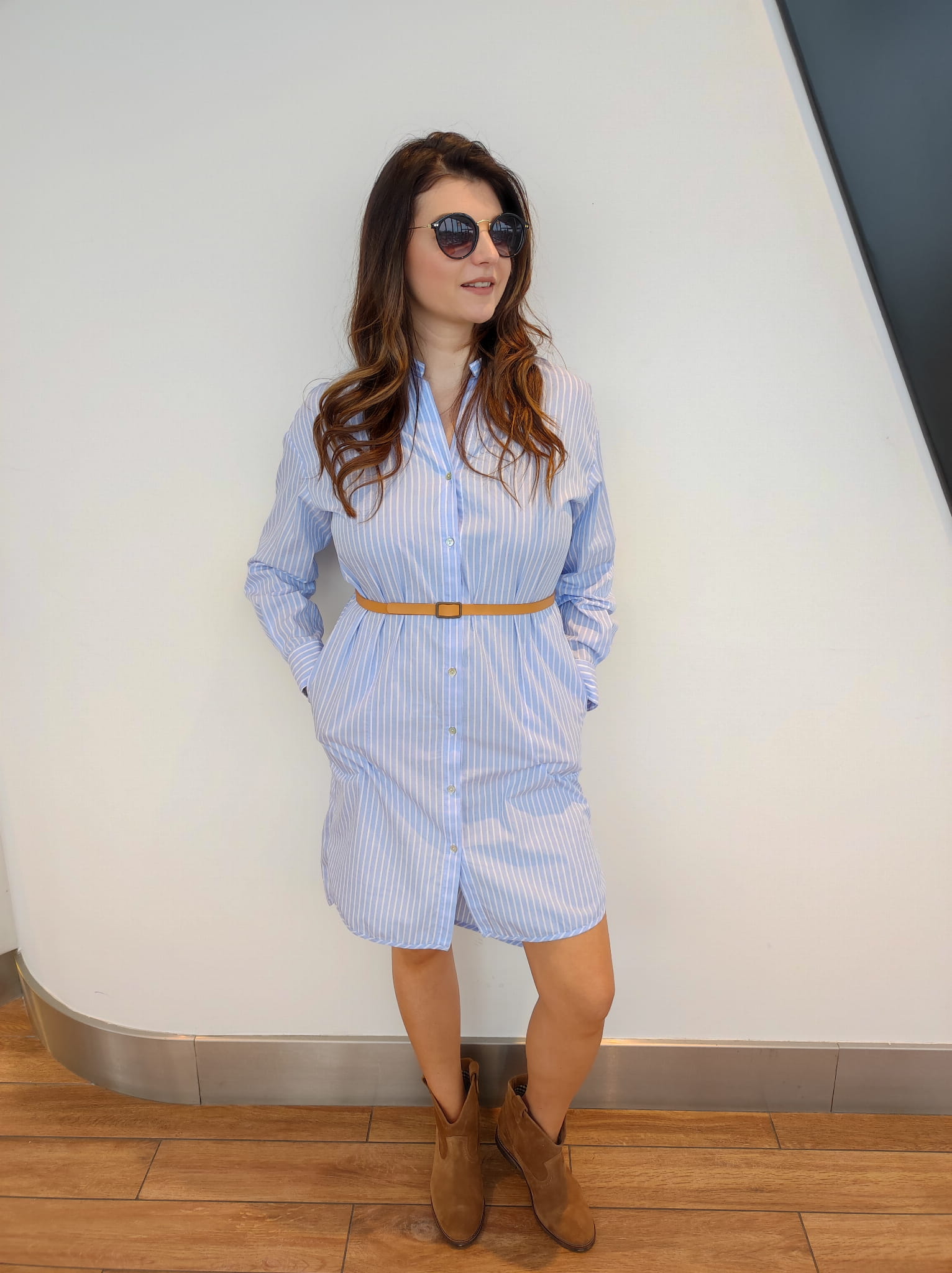 Jasnoniebieska sukienka w pionowe paski Alessia Santi
