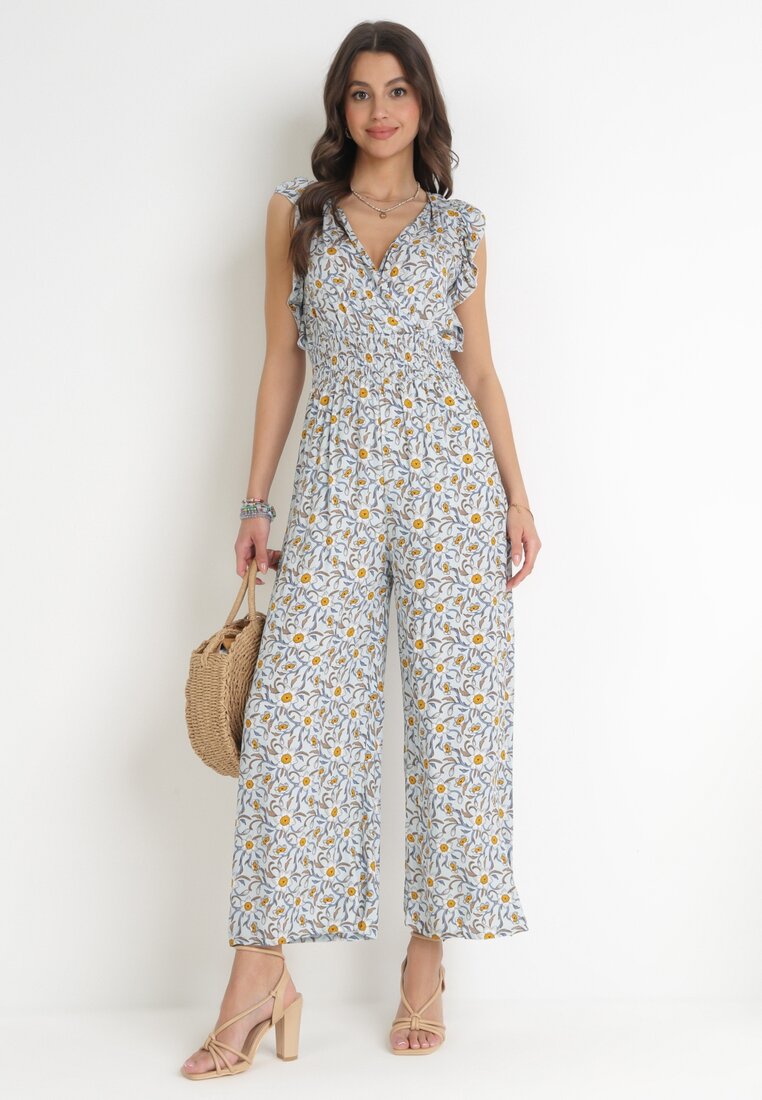 Jasnoniebieski Kombinezon Bawełniany w Kwiaty z Falbanami Zanija