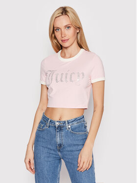 Juicy Couture T-Shirt Ringer JCWS122080 Różowy Slim Fit