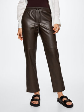 Mango Spodnie z imitacji skóry Apple 37035129 Brązowy Jogger Fit
