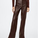 Mango Spodnie z imitacji skóry Maki 37035902 Brązowy Flare Fit