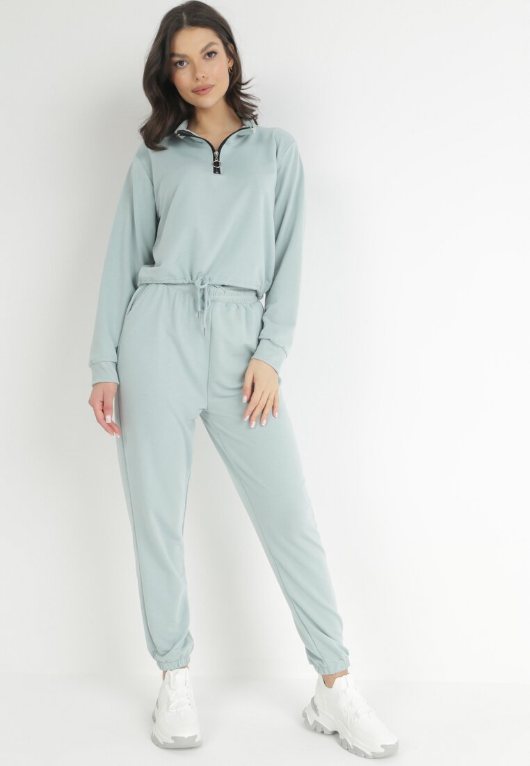 Miętowy 2-częściowy Komplet Dresowy z Bluzą i Spodniami Eneon