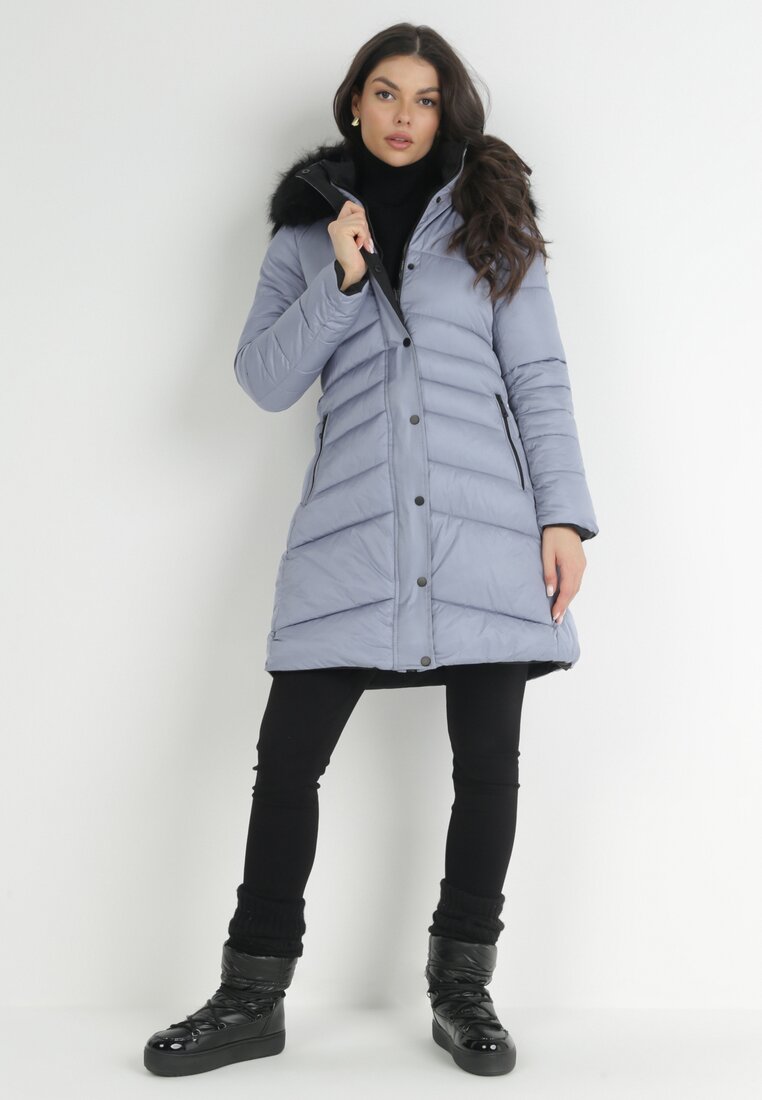Niebiesko-Czarna Kurtka Dwustronna Pikowana z Futerkiem Archana