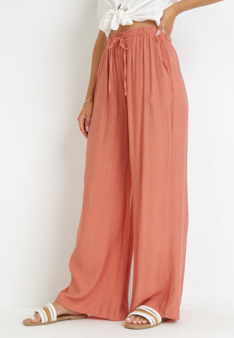 Różowe Szerokie Spodnie z Wiskozy Zyona