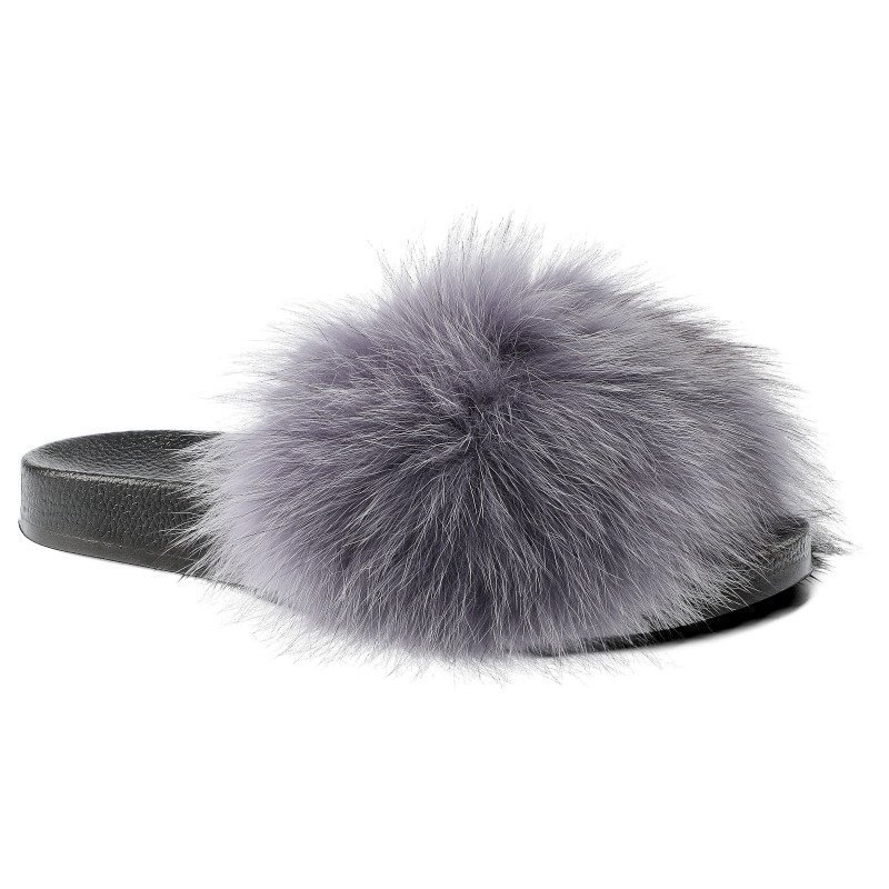 Szare Klapki Carinii Damskie Buty Z Futerkiem