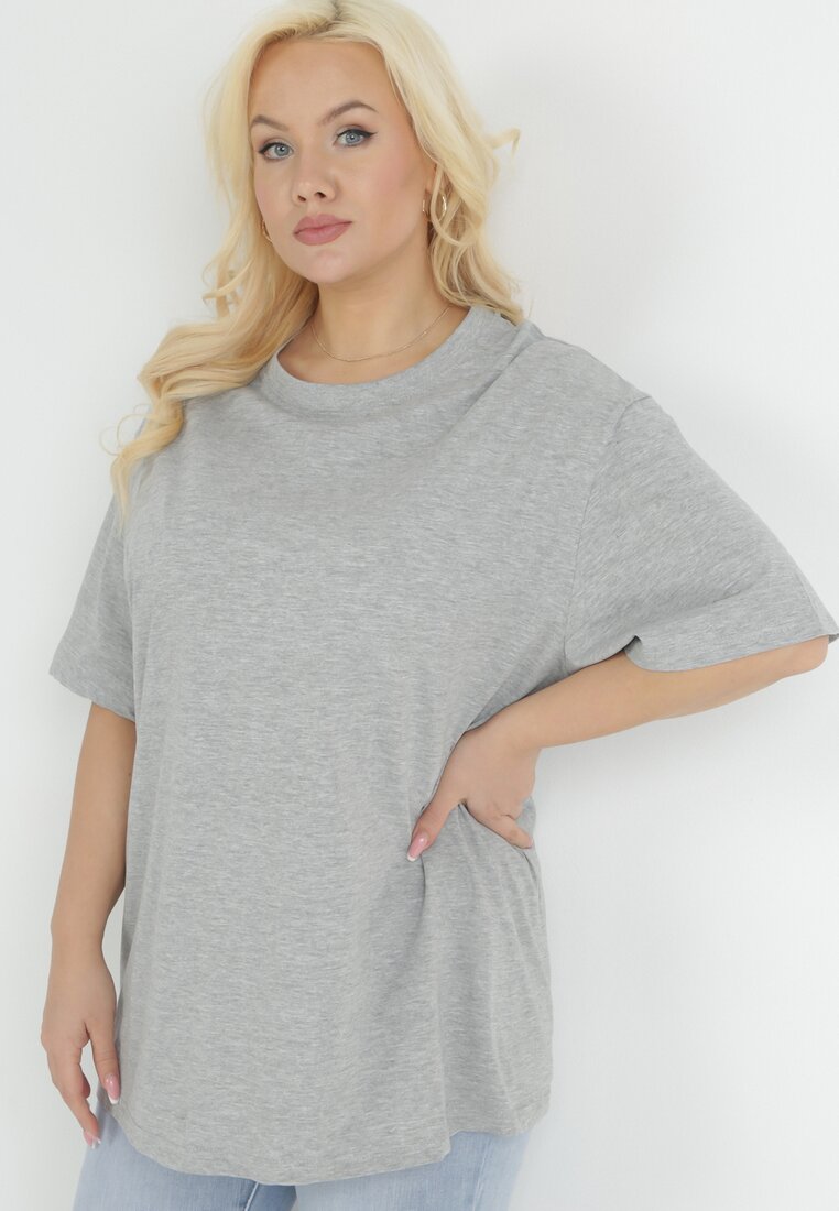Szary Bawełniany T-shirt z Krótkim Rękawem Lutokia