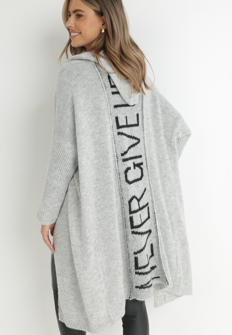Szary Kardigan z Wełną Długi z Kapturem Nih