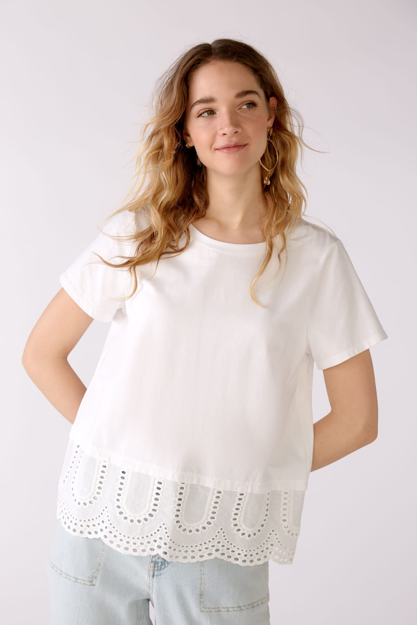 T-SHIRT Z KRÓTKIM RĘKAWEM Z KORONKOWYM WYKOŃCZENIEM OUI