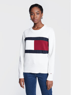 Tommy Hilfiger Sweter Flag WW0WW37457 Biały Regular Fit