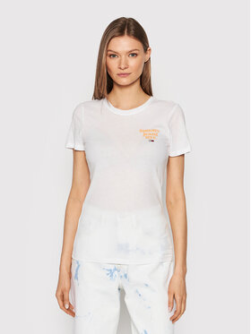 Tommy Jeans T-Shirt Essential Logo DW0DW12734 Biały Skinny Fit