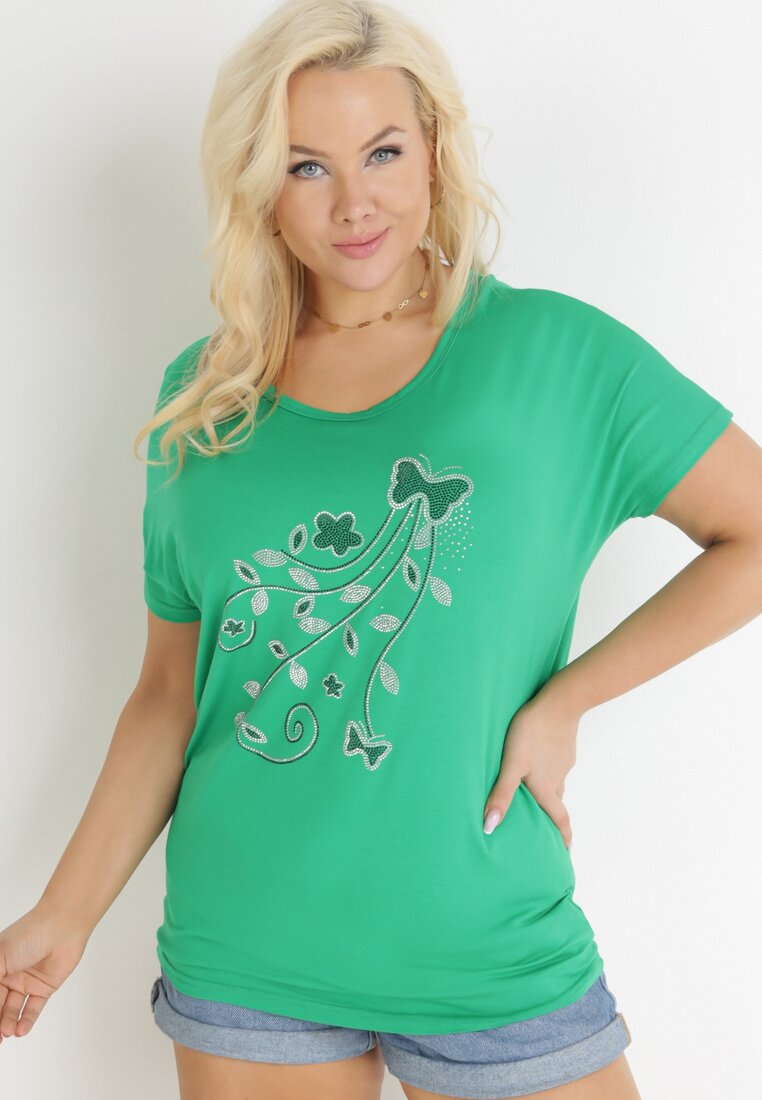 Zielona Bluzka Nietoperz Ozdobiona Cekinami i Cyrkoniami Vitri